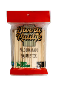 Palo redondo y cuadrado de bambu libre de astillas, desechable.
