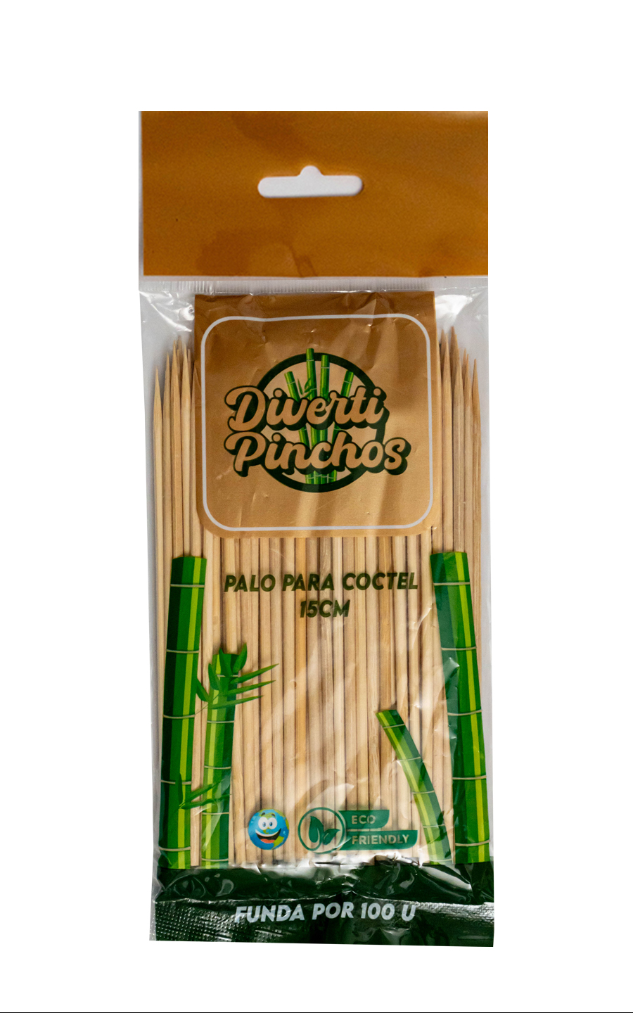 Palo de bambú libre de astillas, con punta en uno de sus extremos, desechable.